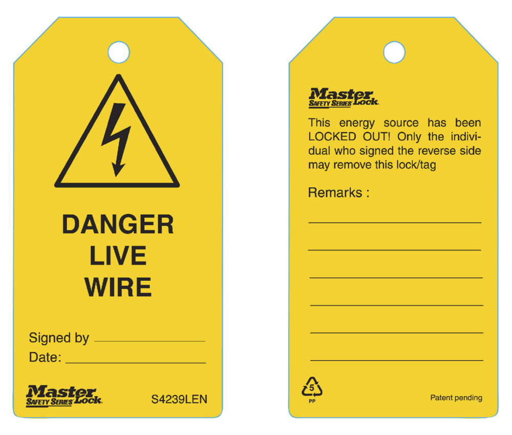The Master Lock Model No. S4239LEN Safety Tag features a process that fuses graphics into rugged industrial-grade polypropylene blended with a metal additive; ideal for use in food processing and pharmaceutical facilities. The longest lasting tags available, the Guardian Extreme tags stand up to wash downs, humidity and extreme temperatures. The longest lasting signs available, Guardian Extreme signs stand up to wash downs, humidity and extreme temperatures.