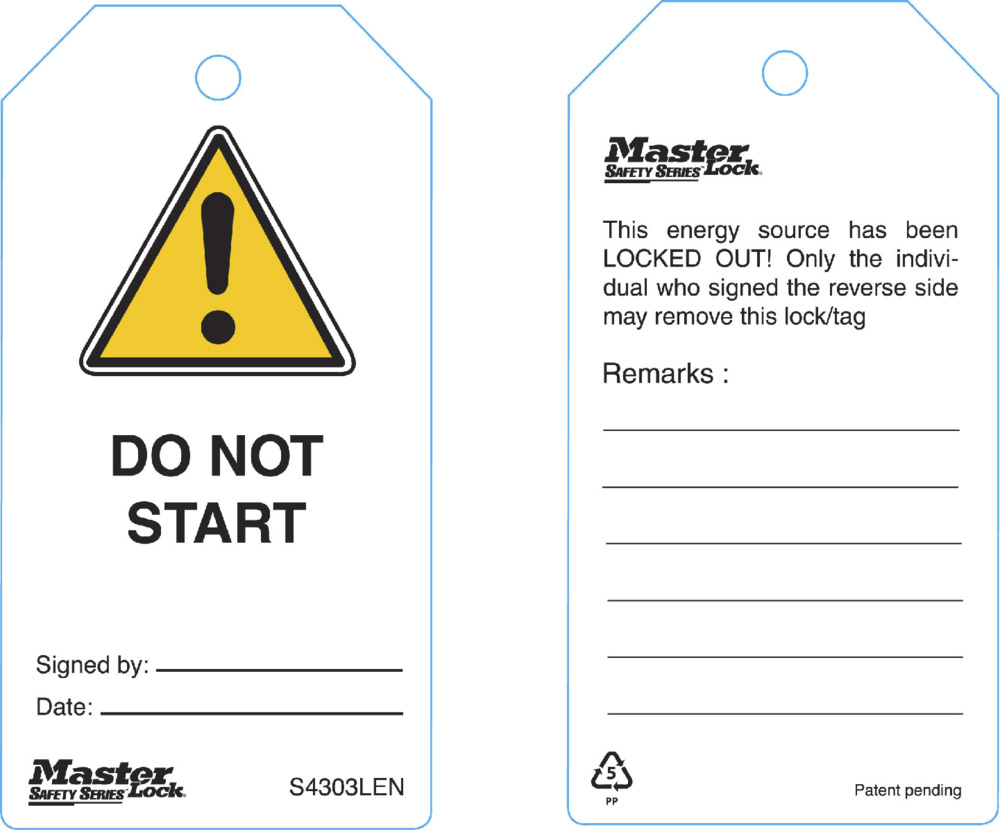 The Master Lock Model No. S4303LEN Safety Tag features a process that fuses graphics into rugged industrial-grade polypropylene blended with a metal additive; ideal for use in food processing and pharmaceutical facilities. The longest lasting tags available, the Guardian Extreme tags stand up to wash downs, humidity and extreme temperatures. The longest lasting signs available, Guardian Extreme signs stand up to wash downs, humidity and extreme temperatures.