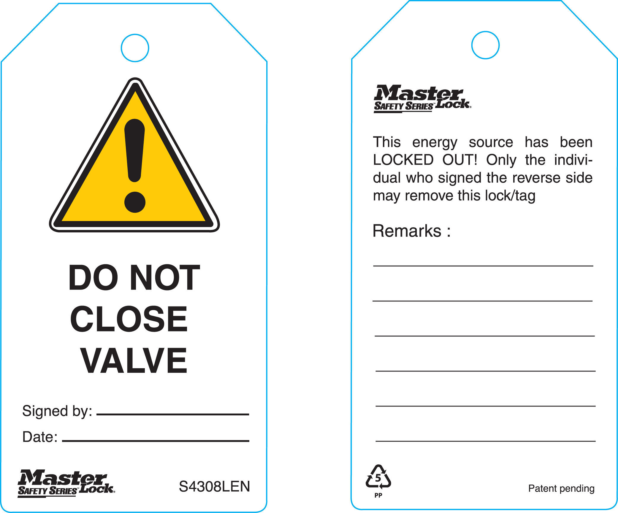 The Master Lock Model No. S4308LEN Safety Tag features a process that fuses graphics into rugged industrial-grade polypropylene blended with a metal additive; ideal for use in food processing and pharmaceutical facilities. The longest lasting tags available, the Guardian Extreme tags stand up to wash downs, humidity and extreme temperatures. The longest lasting signs available, Guardian Extreme signs stand up to wash downs, humidity and extreme temperatures.