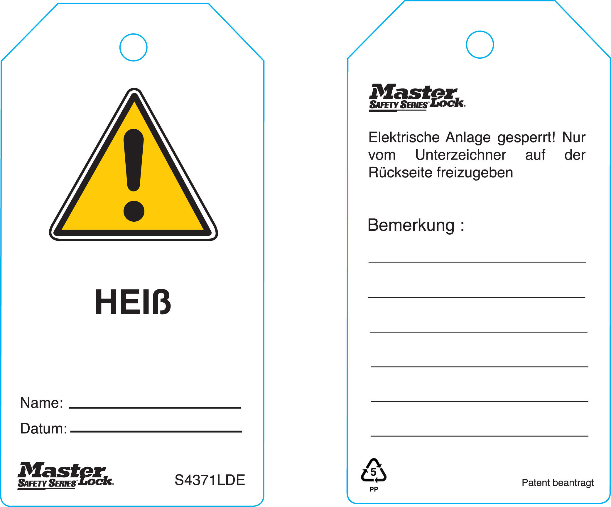 The Master Lock Model No. S4371LDE Safety Tag features a process that fuses graphics into rugged industrial-grade polypropylene blended with a metal additive; ideal for use in food processing and pharmaceutical facilities. The longest lasting tags available, the Guardian Extreme tags stand up to wash downs, humidity and extreme temperatures. The longest lasting signs available, Guardian Extreme signs stand up to wash downs, humidity and extreme temperatures.
