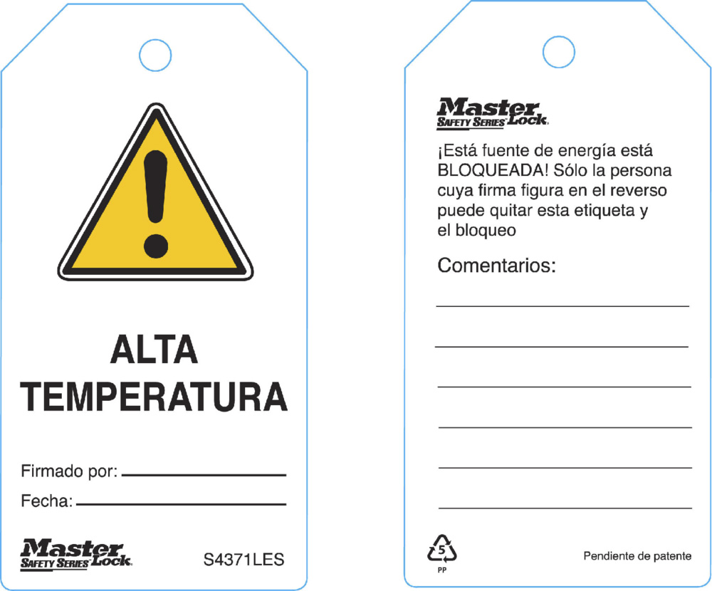 The Master Lock Model No. S4371LES Safety Tag features a process that fuses graphics into rugged industrial-grade polypropylene blended with a metal additive; ideal for use in food processing and pharmaceutical facilities. The longest lasting tags available, the Guardian Extreme tags stand up to wash downs, humidity and extreme temperatures. The longest lasting signs available, Guardian Extreme signs stand up to wash downs, humidity and extreme temperatures.